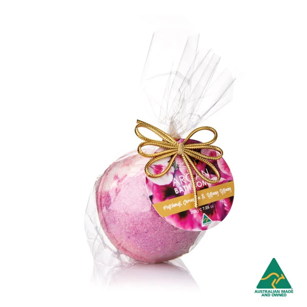 This is how you will feel as soon as you bathe and unwind in a fizzing paradise of exotic Patchouli, Geranium & Ylang Ylang scent with the added benefit of Cold pressed certified organic Argan Oil which is Rich in Vitamin E, antioxidants, omega-6 and omega-9 essential fatty acids. Let the Bath Bomb work its magic and pamper, hydrate, smooth and nourish your skin. Australian & hand made with Love, not tested on Animals this is a must for your weekly Beauty regime. Available in many exotic aromas you are spoilt for choice, treat yourself or makes a perfect gift for your loved ones.