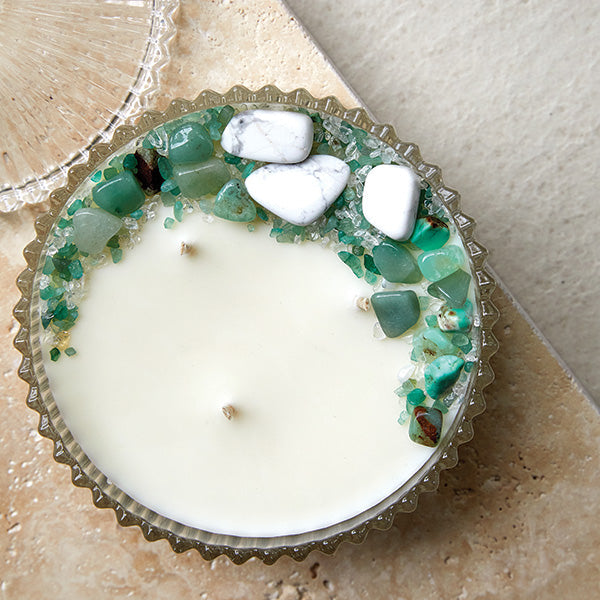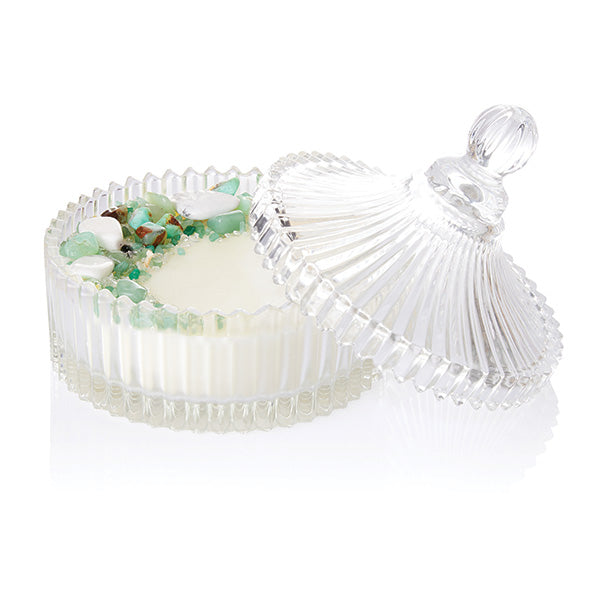 This Extra Large elegant candle is hand-poured in Australia, supplied with stunning crystal glassware, comes complete with a Lid and is beautifully boxed to provide the perfect gift for any occasion. Handmade in Australia with hand selected Crystals & Stones selected with love & attention. Using only the best quality Australian Made fragrances each Candle fills the room with incredible uplifting, gorgeous Australian scent making this candle a perfect addition to your self care routine.