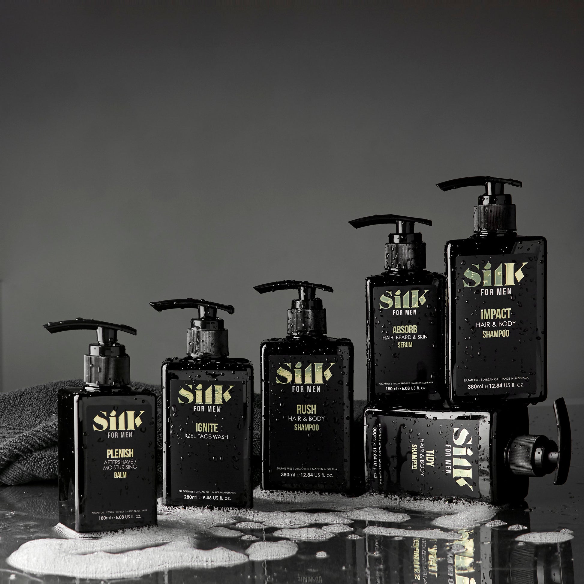 Silk for Men Sulfate Free Argan Hair & Body Shampoo gently cleans and conditions from head to toe