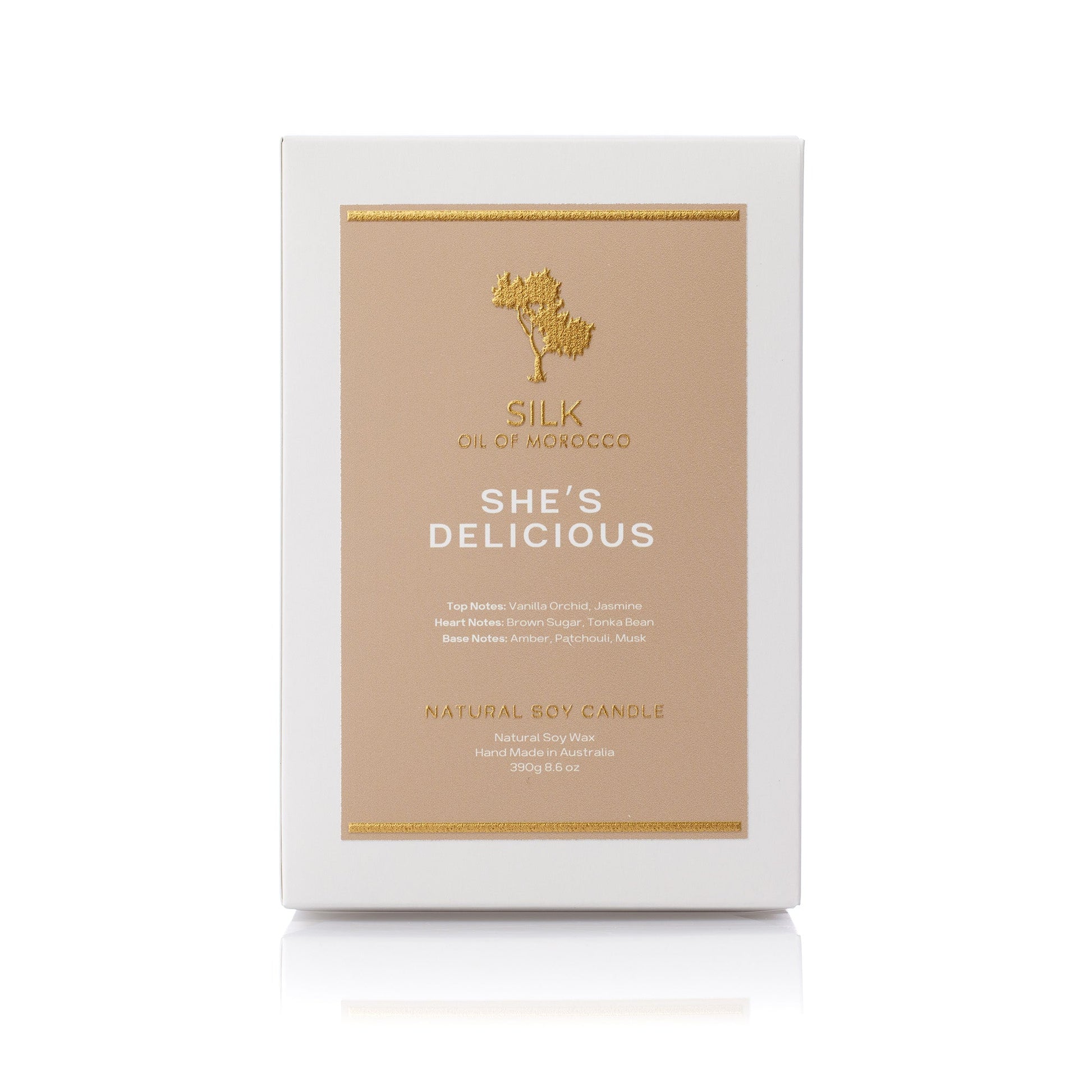 Each burn reveals the soft allure of vanilla orchid and jasmine, melting into the richness of brown sugar and tonka bean. As it deepens, amber, patchouli, and musk unfold with velvety warmth, creating an atmosphere that feels both comforting and irresistible — a scent that soothes the soul while captivating the senses.